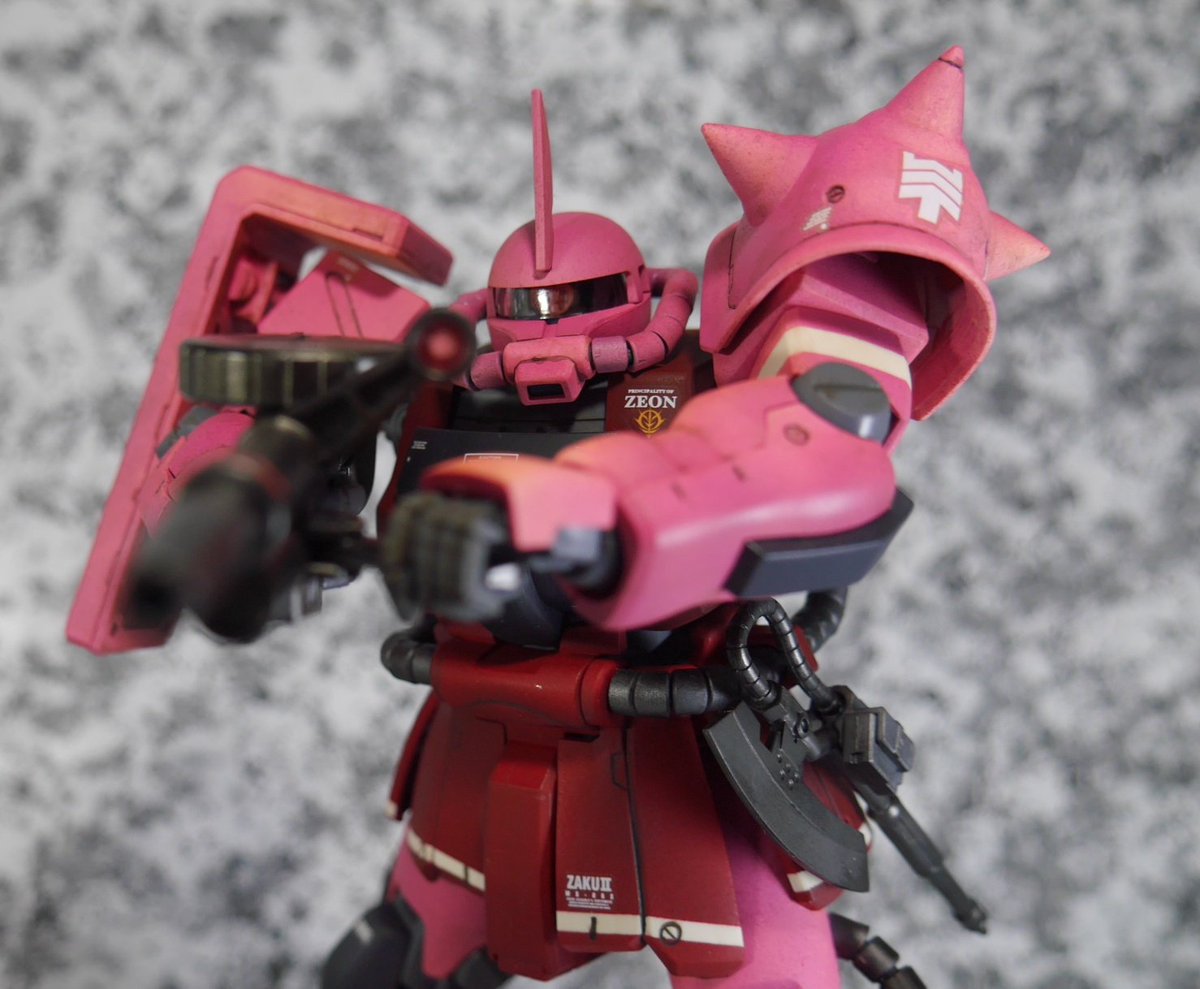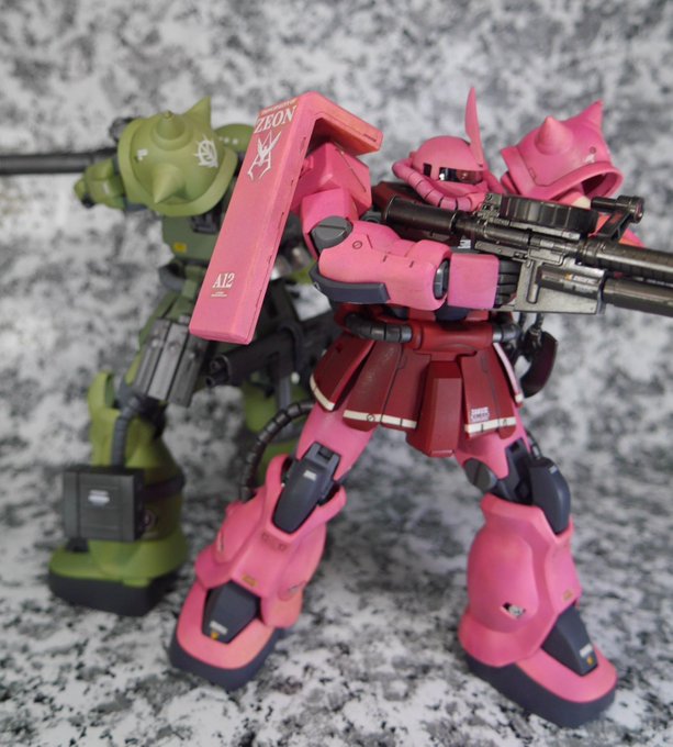 MG シャア専用ザクII F2 先に作ったザクと統一感持たせたくて塗装とデカールでジ・オリジンぽくしてみた #ガンプラ #ガンプラの画像を貼るとRTされると聞いて
