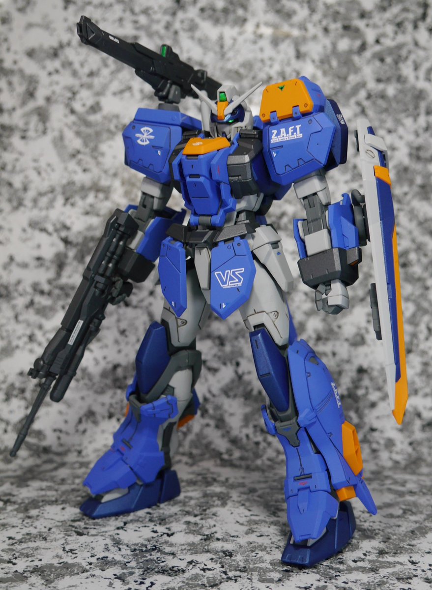 全体的に白い面積が多いのでブルーとレッド、グレーでオリジナル塗装し水転写デカールで情報量を増やしてみました #ガンプラ
