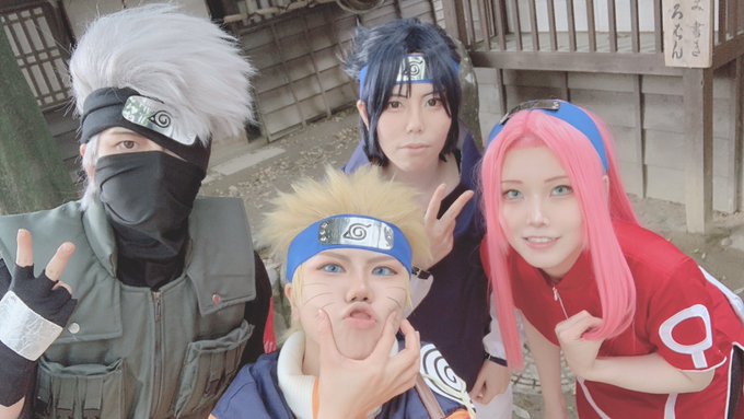 【cosplay/NARUTO/うずまきナルト】 本日のフルメンバー!! みんなお疲れ!!! ----------------- ナルト:久遠 サクラ:シュウ(@syu1ace ) サスケ:コタロー(@1023_furaming_2 ) カカシ:ぱて(@patepatenin ) 📸:鵜月さん(@uduki_Lirvaxx ) アシスタント:殻子(@karako_47 ) #アミティエ