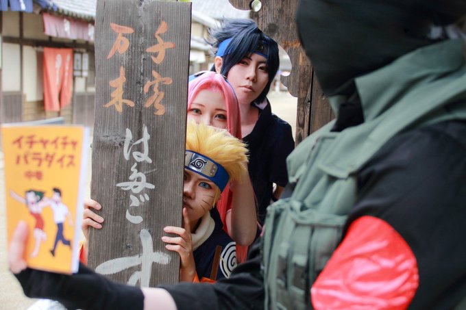【cosplay/NARUTO/うずまきナルト】 任務開始!! ----------------- ナルト:久遠 サクラ:シュウ(@syu1ace ) サスケ:コタロー(@1023_furaming_2 ) カカシ:ぱて(@patepatenin ) 📸:鵜月さん(@uduki_Lirvaxx ) アシスタント:殻子(@karako_47 ) #アミティエ