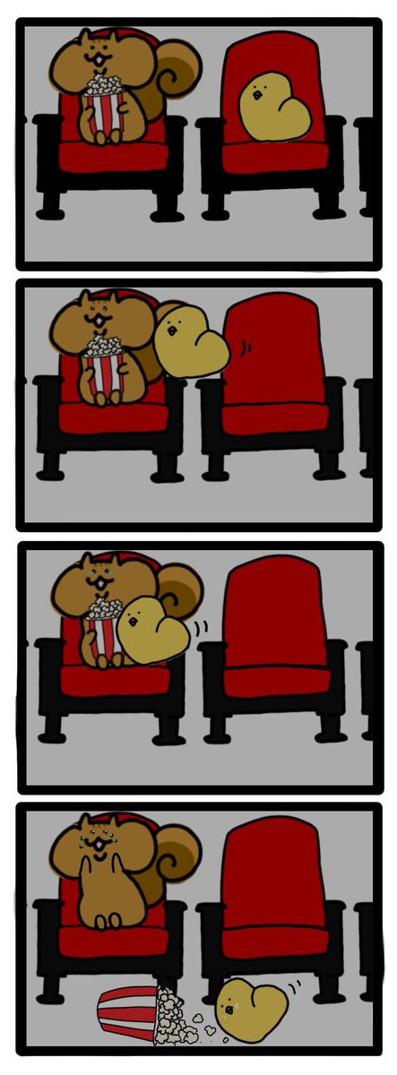 18 267 四コマ 『映画館 』 #四コマ漫画 #イラスト #illustration #ゆるい絵 #とりさん 22/03/16 18:42