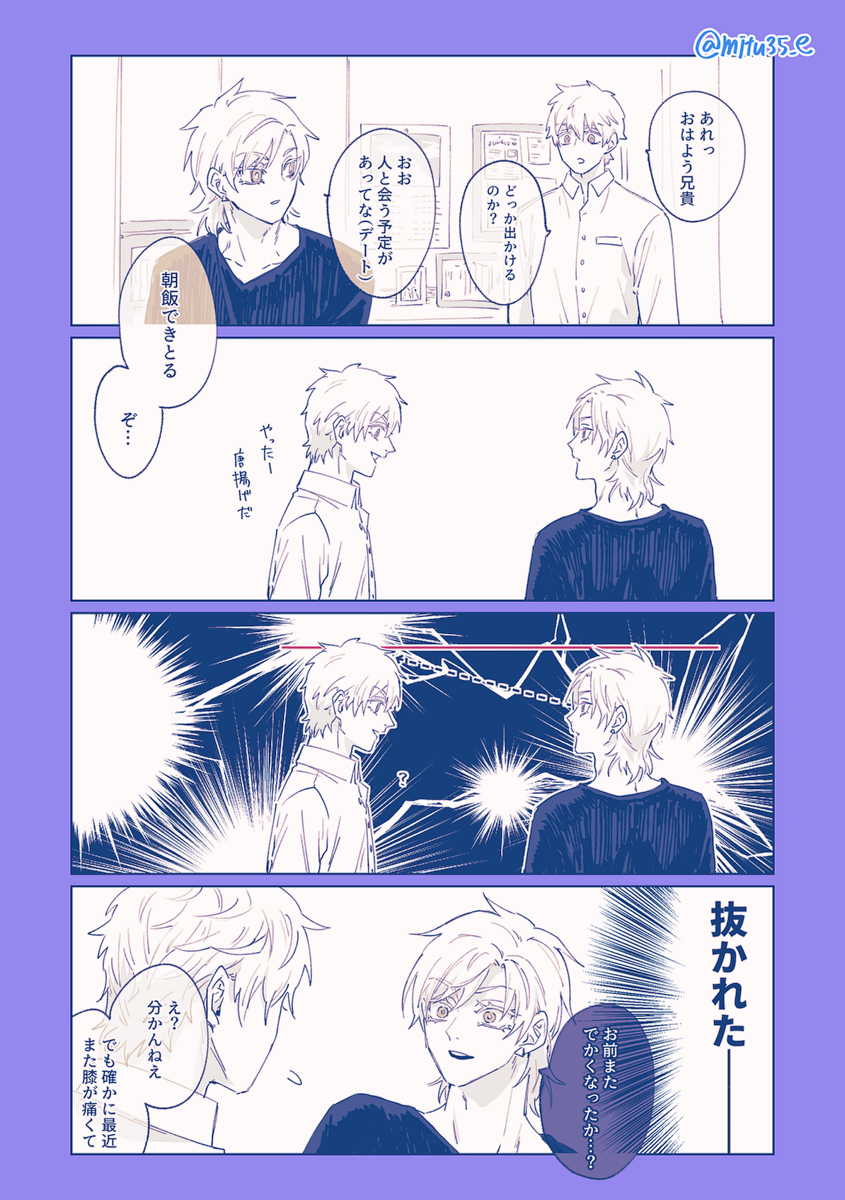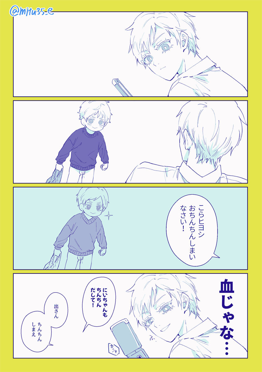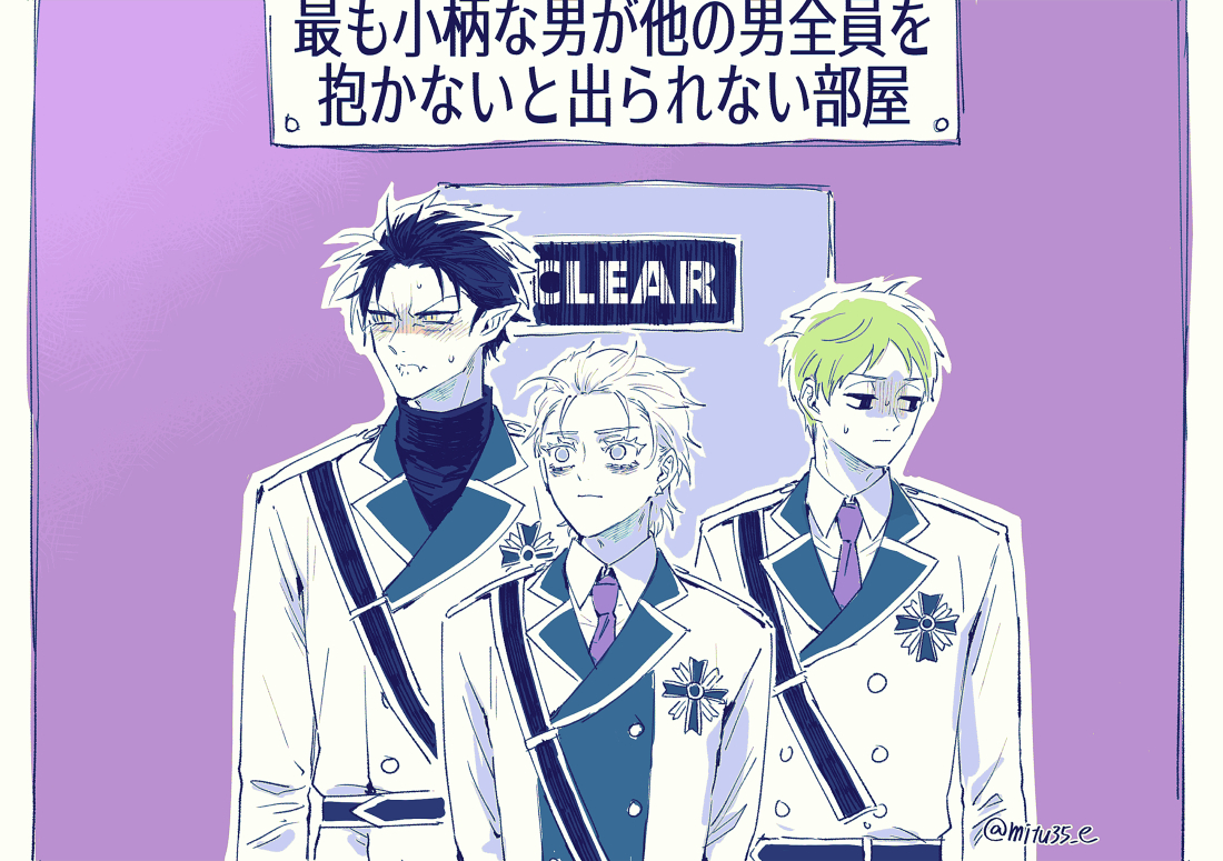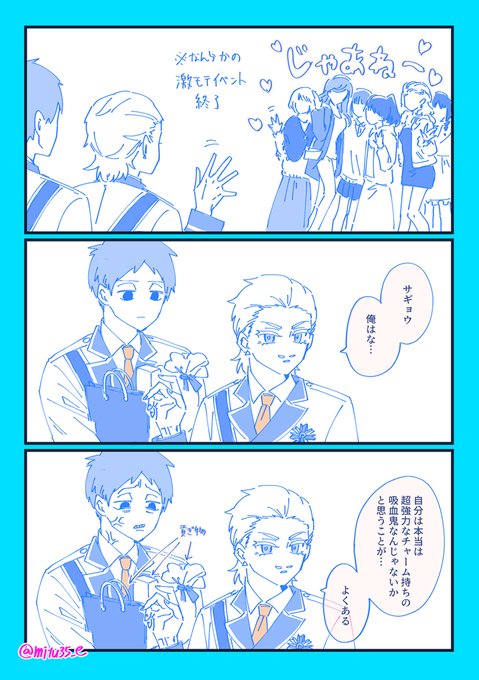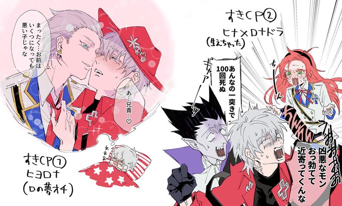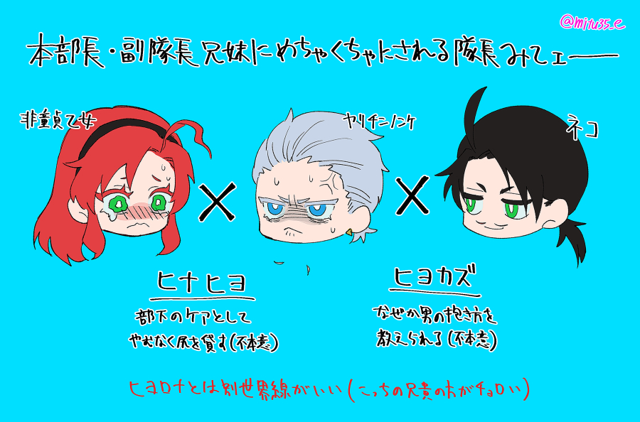 38 202 突然天啓を得たヒナヒヨカズ(生えちゃった副隊長×隊長のヒナヒヨ、ヤリ〇ンノンケ隊長×ネコ本部長のヒヨカズ) poipiku.com/518068/6199840… 22/02/15 15:32