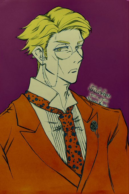 ハロウィンにかこつけて、ななみん執事ぽい衣装を着せてみた!!! 某黒い執事さんを参考に描いてのだけど、モノクルは私の好み(笑) 絶対似合うと思うんだ!!!!!! #呪術廻戦 #七海建人 #ハロウィン2021 #アイビスペイント