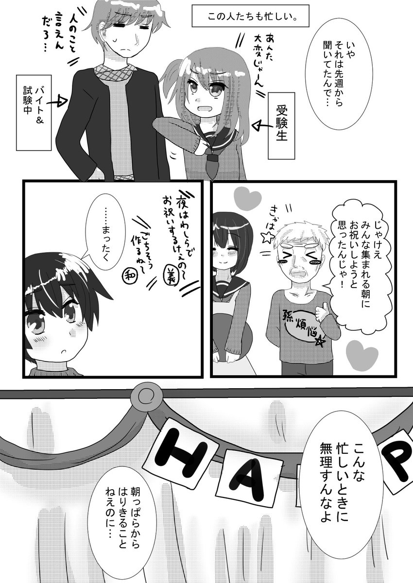 0 9 #今月描いた絵を晒そう じいじのお祝いイラストと、そーかず描きましたね(`・ω・´) あとは文化祭のまとめとか、草一郎と静彦の漫画とか…。 21/03/31 08:12