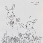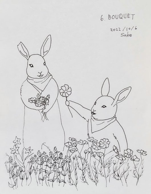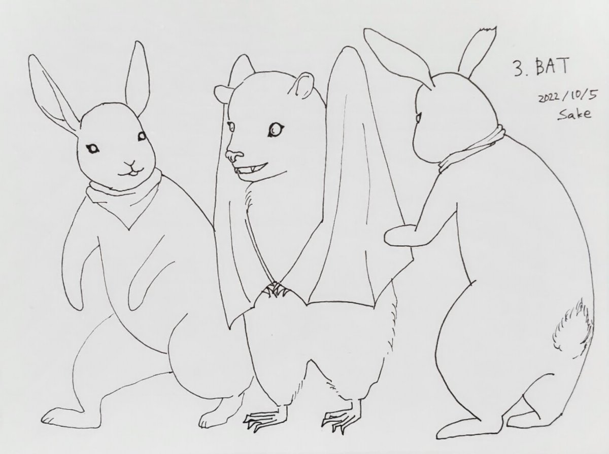 #inktober #inktober2022 #インクトーバー2022 3.BAT コウモリ こうもりキャラはいませんが、お題のコウモリとコラボということで…🐰🐰 おしゃべりしてる風にしたかったんだけど、ナンパしてるっぽくなって、自分でちょっと笑ってる