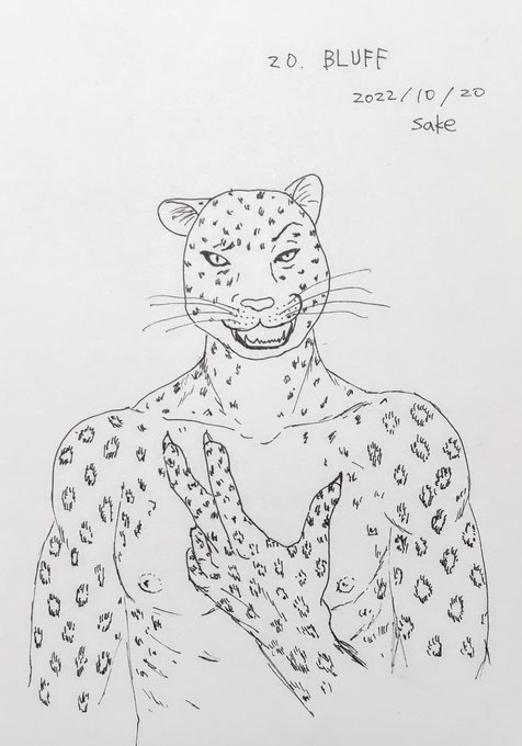 #inktober #inktober2022 #インクトーバー2022 #furry #furryart leopard 20.BLUFF ハッタリ 自創作の豹獣人、長男のローガー 嘘も脅しも平気な悪いヤツなのです