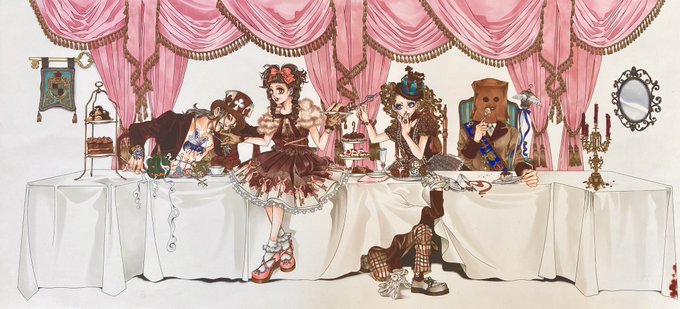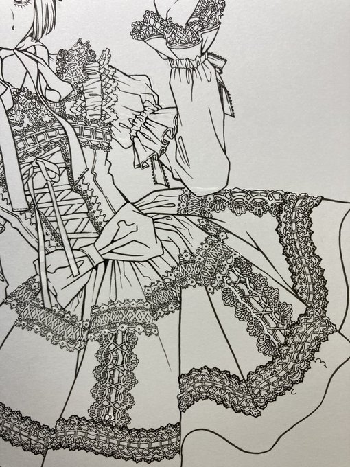 懐古系ゴスロリ描いてる。 ゴスロリはとにかく姫袖。肌の露出少なくトーションレースとラッセルレース 山盛り。 このラパと先日のロリィタラビでグッズも作られるようですよ🦇 pochedelapin.thebase.in