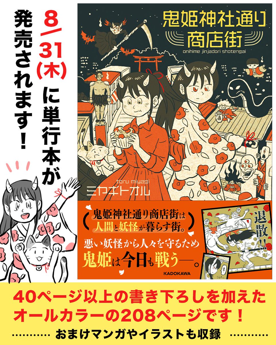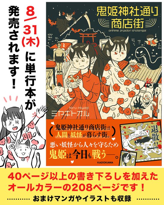 8/31(木)に「鬼姫神社通り商店街」の単行本が発売されます! 40ページ以上の描き下ろしを加えたオールカラーの208ページです! ▼現在予約受付中です!ぜひよろしくお願いします🙇♂️ amazon.co.jp/dp/4046821868?…