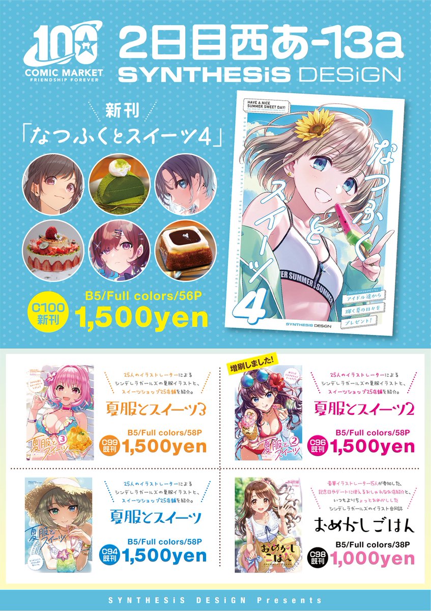 #C100 のお品書きです! 8月14日(日曜日)西あ-13a「SYNTHESiS DESiGN」にてお待ちしております~! 好評につき完売した「夏服とスイーツ2」をちょっとだけ増刷しました!シリーズ合わせて、是非手に取ってみてください!☺️🙏🍰 通販委託中✨ 🍈melonbooks.co.jp/detail/detail.… 🐯ec.toranoana.jp/tora_r/ec/item…