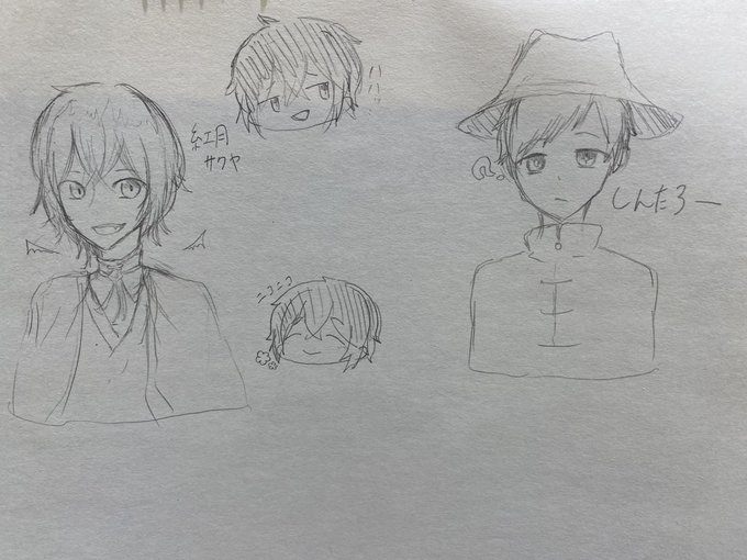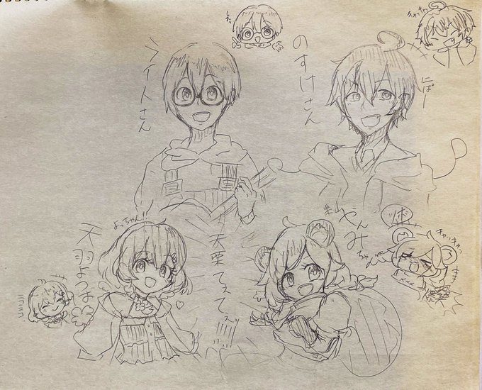 仕事の休憩中にお絵描きー! 男子組普段の絵柄とほんの少し変えてみた✨ ほないこかっメンバーちゃんと描いたの初めてみんなビジュよすぎ問題😇 #とびユニ自由帳 #やんみの絵 #のすけ絵 #よつはがき #スタボアート
