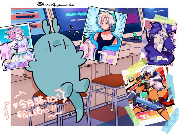 19 56 #今月描いた絵を晒そう 6月分 ケーモケモケモケモ 今月もどうぞよろしくお願いします💪🐟💪 23/07/01 16:57