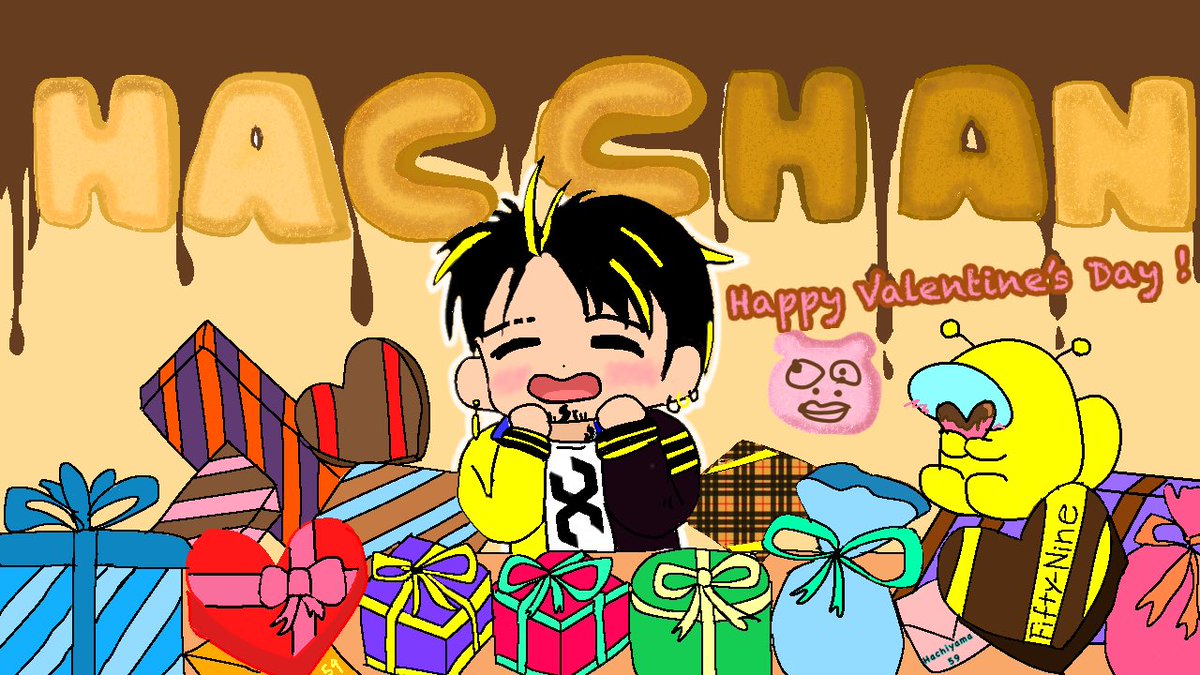 はぴばれー!!! それー( ´・ω・)つ──✨🍫🍫🍫🍫🍫⭐✨ #ハッチャンの絵