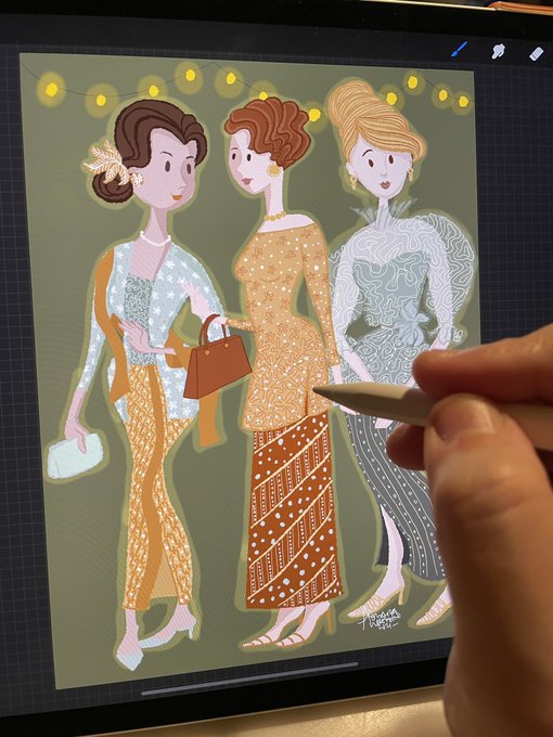 Indonesian women all dressed up to attend a wedding party. Drawn with @Procreate ❤️✨ #illustration #ArtistOnTwitter #ArtistOfIndonesia #ArtistsofSEA