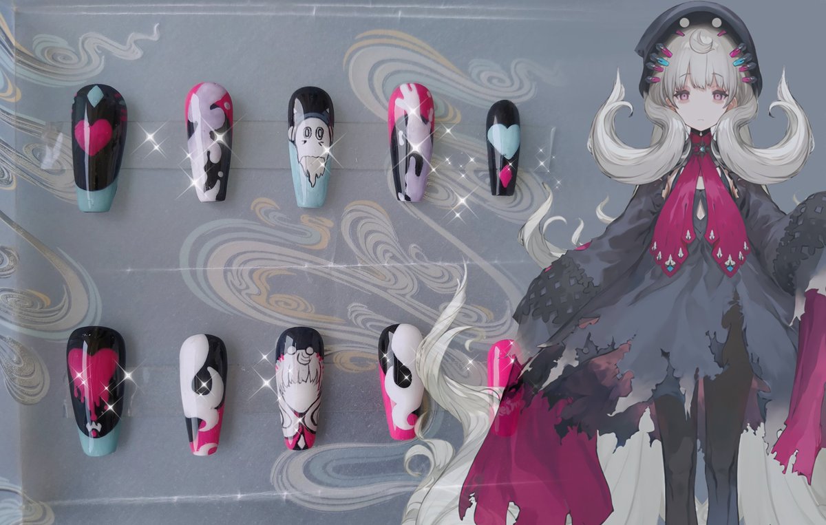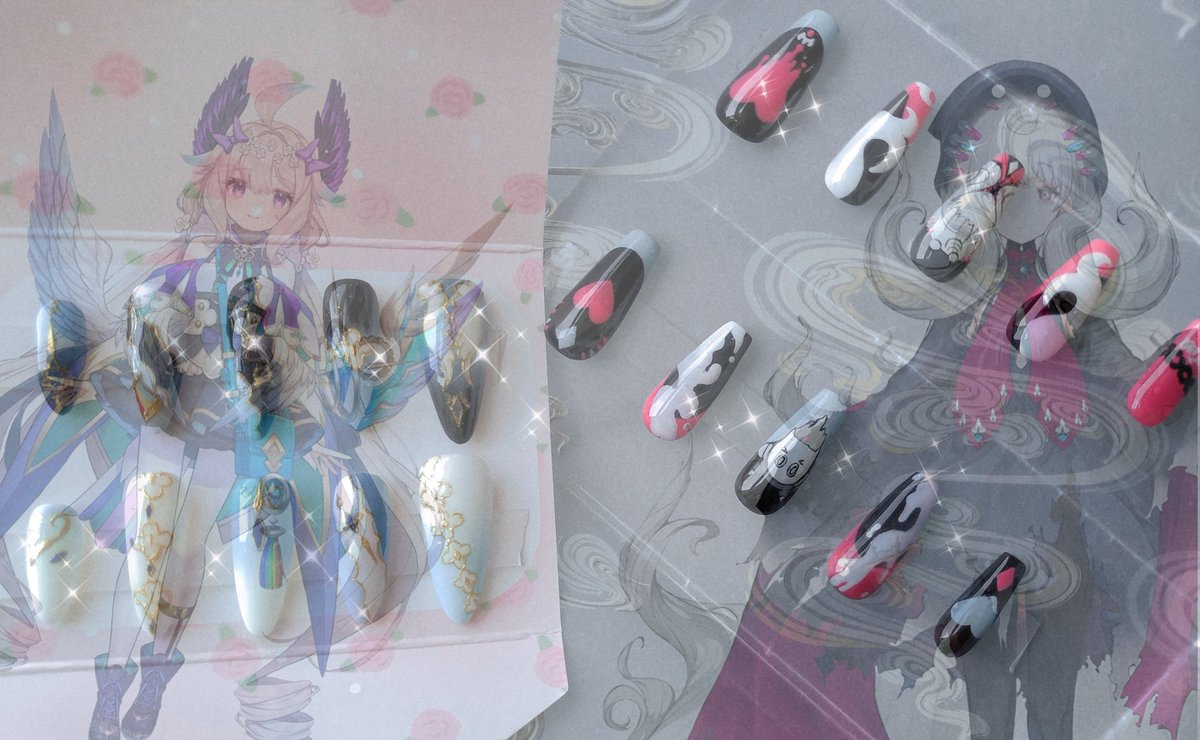 my sister made reimu&enna's impression nails for me🥺🥰that's so cuteeeeeeee🤍💜 #Reimural #エナーアート #Palouette #nijispiritbird