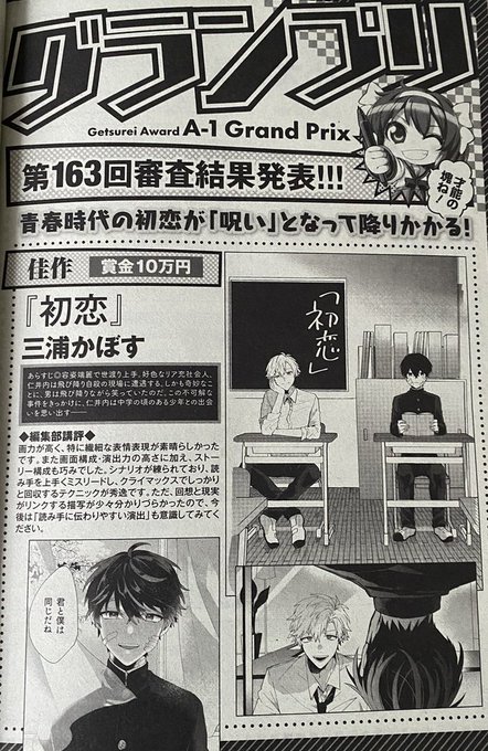 本日発売の週刊少年マガジンで月例賞いただけました! 嬉しいです!