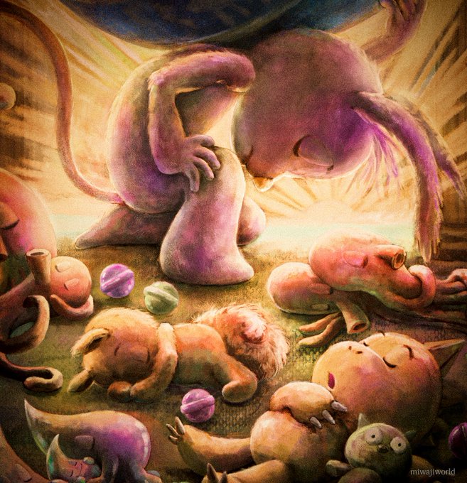 キャンディーの学堂🍬 ぼくたちは理想の飴について議論中🦖🐭たこくんたちも興味津々なんだ💜 #イラスト #ラファエロ #絵描き #アテナイの学堂 #イラスト好きさんとつながりたい #絵描きさんとつながりたい