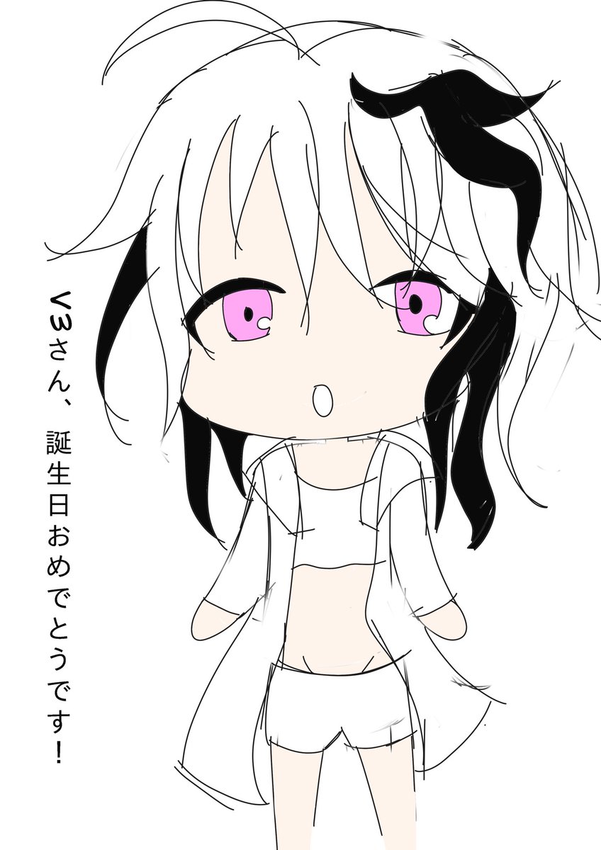 ということで V4、talk、しーちゃんと私からV3へのお祝いコメントミニキャラflowerと私の分身です( 'ω') 服の色は塗ってないですが表情は各々変えてます #フラワ誕生祭2023 #v_flower