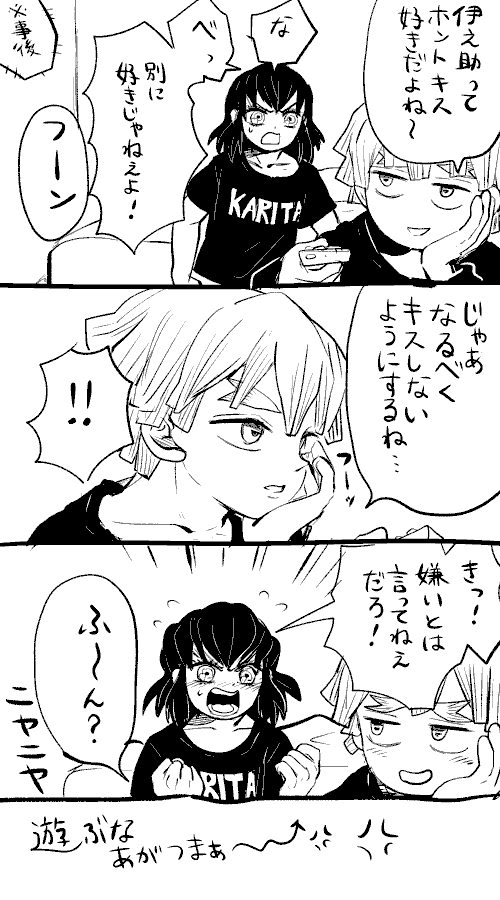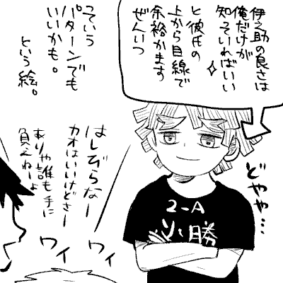 これは素直ではないタイプのいのぴをからかうあがつまの善伊らくがきです。