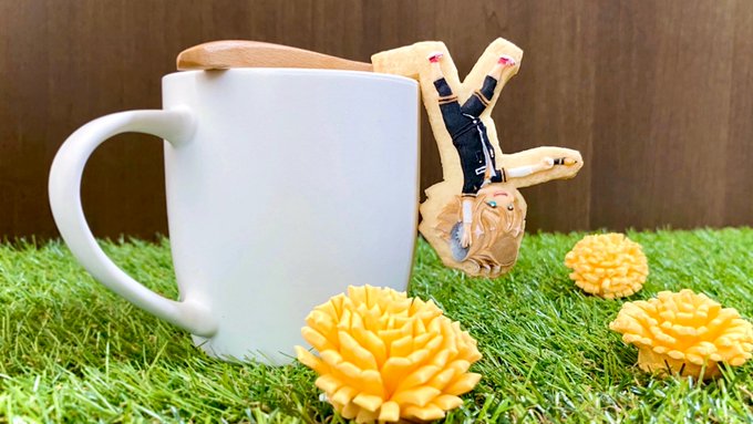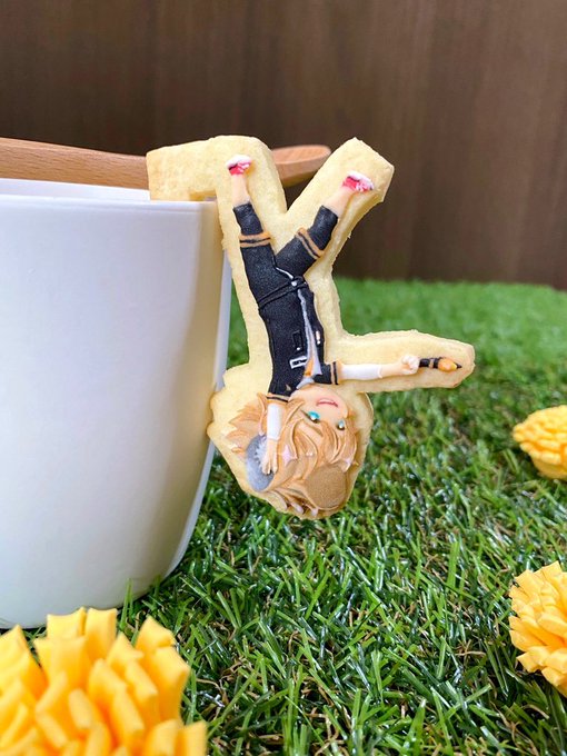 624 3202 ラギーのマジフトひっかけクッキー&たんぽぽ🐆🌼🌼🌼 たんぽぽも砂糖菓子です #ツイステ料理部 #ツイステ製菓部 20/09/25 17:53