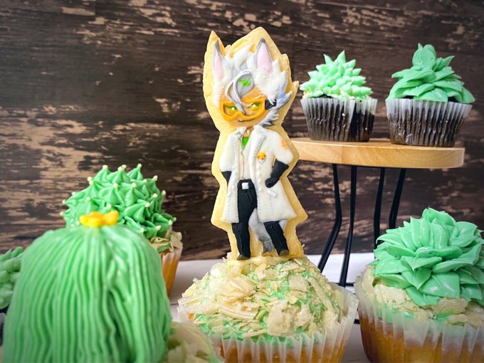 353 2426 ジャックくんお誕生日おめでとう🎊🌵🐺🎊 (アイシングクッキーとサボテンカップケーキ) #ジャック・ハウル誕生祭2020 #ツイステ料理部 #ツイステ製菓部 20/10/11 00:15