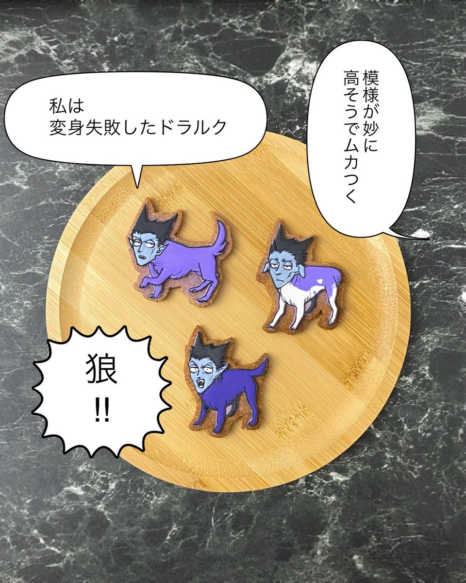 【3枚目】 3種全て:74死(ドラルク観察日記) (上段右は93死・118死・207死に、上段左は8死にも登場) 【4枚目】 上段右、下段:93死 上段:194死(怪奇3本立て) 人面犬かわいいからいっぱい作った