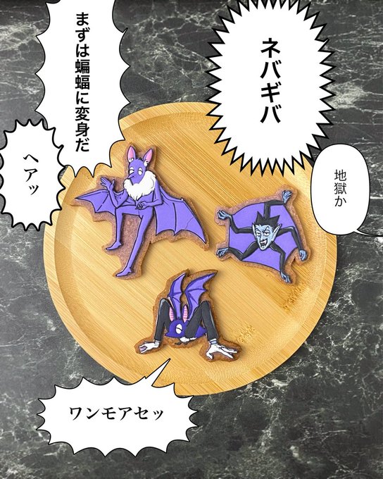 ドラルク変身アイシングクッキー作ったよ 56種類、土台は紫芋クッキー 画角に収まってないのでツリー見てくれると嬉し #吸死料理部