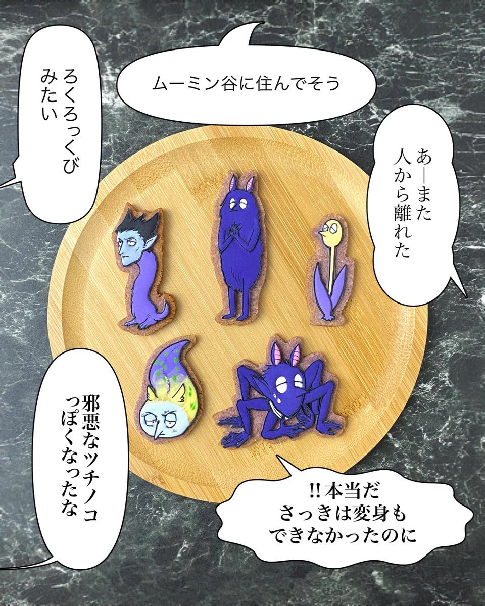 1405 4046 ドラルク変身アイシングクッキー作ったよ 56種類、土台は紫芋クッキー 画角に収まってないのでツリー見てくれると嬉し #吸死料理部 23/01/27 20:48