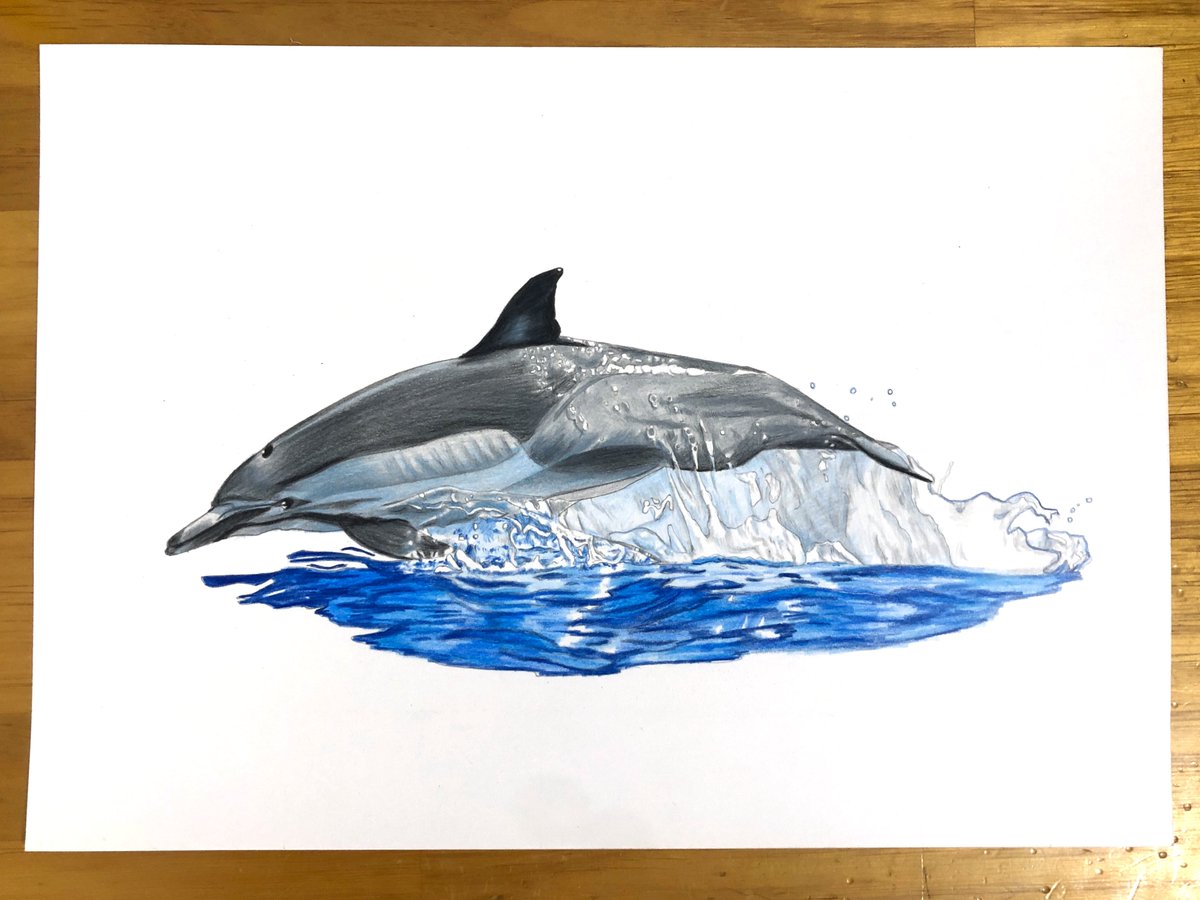 色鉛筆でイルカを描きました🐬 #色鉛筆画上達ドリル動物編