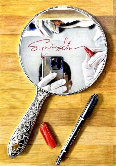 19 134 #作った本人も作り方説明するのむずかしい作品 #色鉛筆画 大きさを合わせ、向こう側の景色と位置を合わせ、色を合わせ… 具体的にどうやったかはヒミツ 23/06/10 21:29