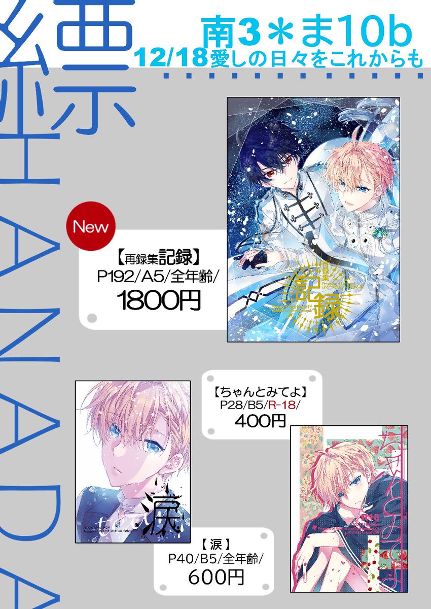 【12/18 賢マナ/しの日々お品書き】 新刊*pixiv.net/artworks/10351… 既刊①*pixiv.net/artworks/99848… 既刊②*pixiv.net/artworks/96308… ◆アナログ生原稿お渡しについて→