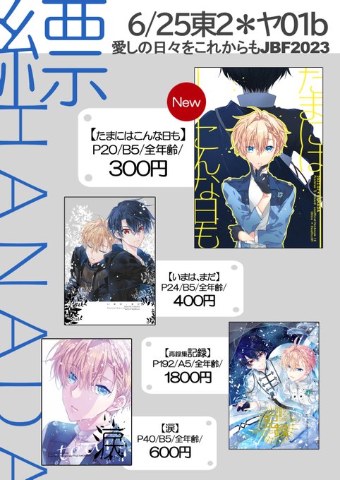 明日のお品書きです! 新刊*pixiv.net/artworks/10925…) 既刊①pixiv.net/artworks/10760… 既刊②pixiv.net/artworks/10351… 既刊③pixiv.net/artworks/96308… ※再録本の持込数は諸事情により少ないです申し訳ございません。(今後のイベント分と通販は十分にございます)