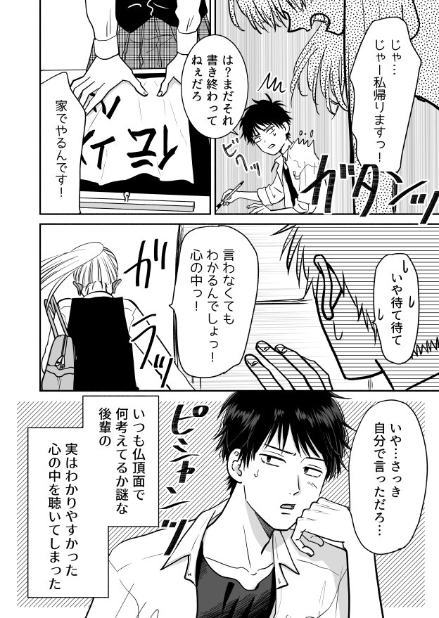 7 117 心の中を読めるらしい先輩と読みづらい表情の後輩 #創作漫画 #漫画が読めるハッシュタグ #創作男女 22/03/26 23:08
