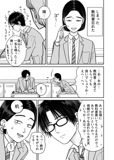 教科書忘れて隣の男子に見せてもらう男子苦手な女子 #創作漫画 #漫画が読めるハッシュタグ #創作男女