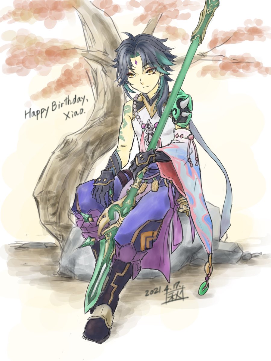 お祝いを素直に受け取ってくれる人ではないでしょうけど、心穏やかな日々がありますようにという思いを込めて。 魈、誕生日おめでとう。 Happy Birthday Xiao. I love you. #原神 #原神イラスト #GenshinImpact #genshinimpactfanart