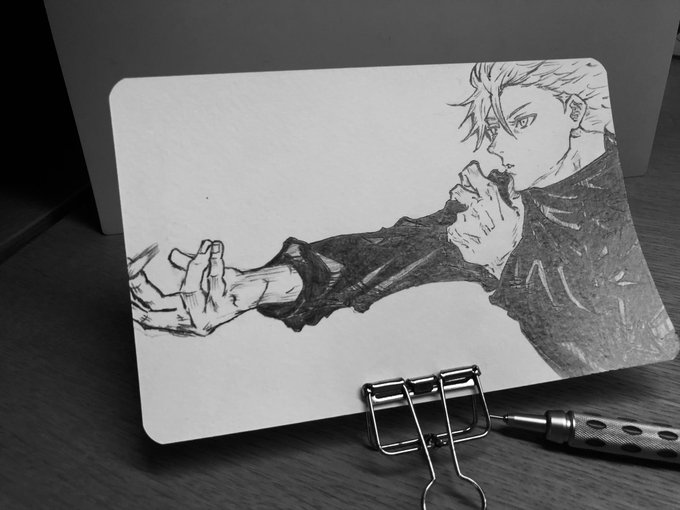 2 8 五条悟 虚式「茈」 #イラスト #五条悟 #呪術廻戦 #虚式茈 #ラクガキ #模写もどき #アナログイラスト 21/07/23 18:52