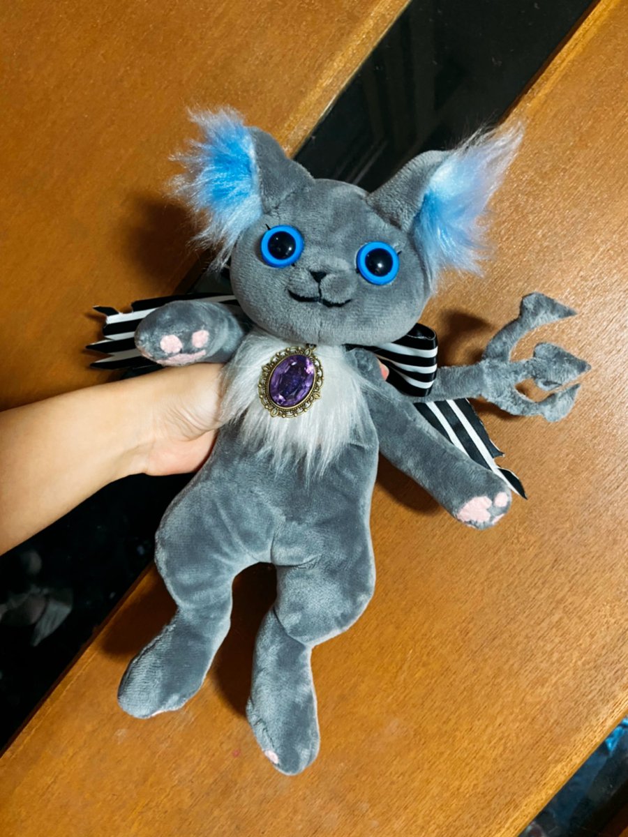 グリムひとまず完成しましたっ!! なかなか可愛く出来たと思うんだけど、素直そうな顔になっちゃったので表情差分付けられるように口を着脱式にしようかと目論んでます😎 #ツイステファンアート #twst手芸部