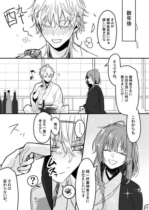149 1199 これは恋を自覚した瞬間の鶴丸国永さん。このあと伊達仲間から蹴られるし肘鉄くらう 23/01/09 17:55