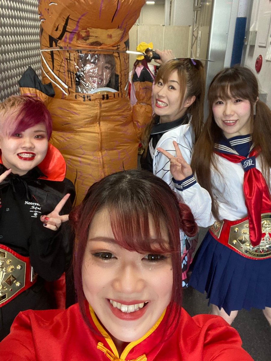 Happy🎃Halloween👻👻👻 V3達成ーー!! JKコスプレはどうでしたか⁉️制服って楽しいね!! 明日のイベントは祝勝会も兼ねてに決定しました✰°*。 入場前の貴重なショット!! 世羅テカテカしてるwww #iceribbon #はっぴぃかめら #JK #コスプレ #HappyHalloween2020