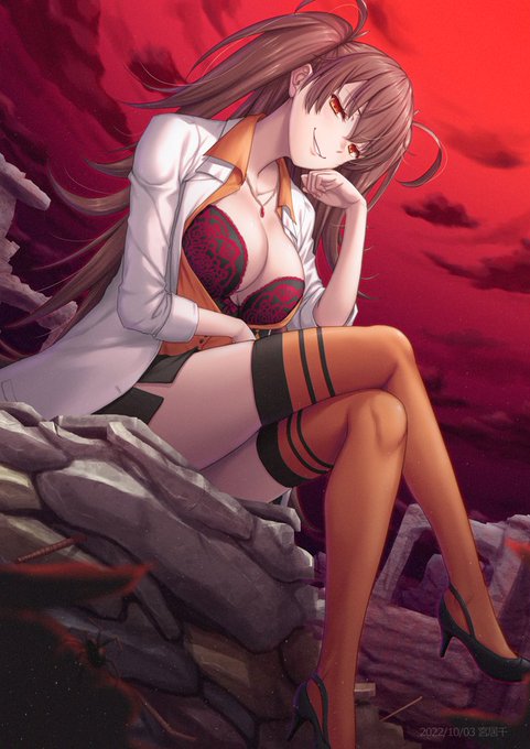阿良句博士。現時点ではまだ詳細は語られていませんが、怪しさ満点ですね。そして定期的に描きたくなる朱い空。#月姫 #阿良句寧子 miyaimax.tumblr.com/post/697176840…