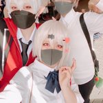 4 15 【コス注意】 スリーショット貰った🙌🏻💕朝からやる気の無いメンバーで相変わらず気楽だった😌いっぱい遊んでくれてありがとう…!2人とも最高に可愛いかったな😘😘😘コートスーパー踊りづらいね… 23/07/09 17:52