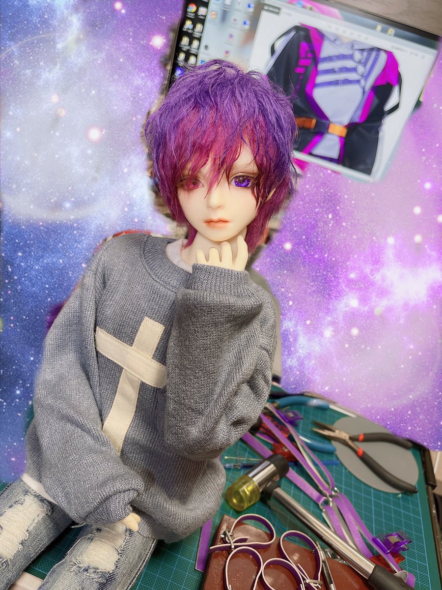 終於有空自制了Uki的假髮給我家BJD 衣服還在努力制作中~(*´∀`*)💜 #UkiVioleta #VioletAtelier