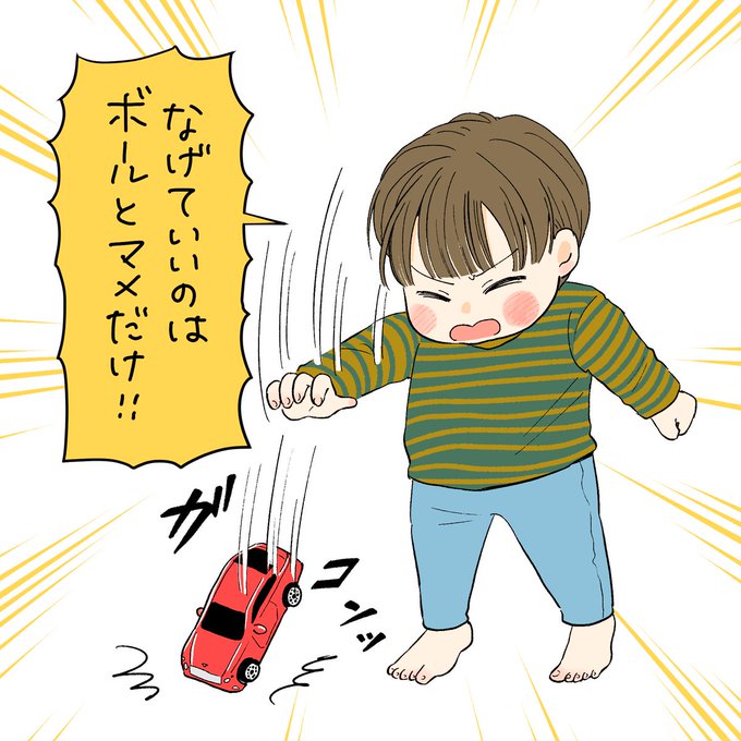 17 237 息子が癇癪起こすと物を投げてくるので、その都度注意してるんだけど、最近は注意するときの言葉だけ定着してきた。#育児絵日記 23/04/04 07:40