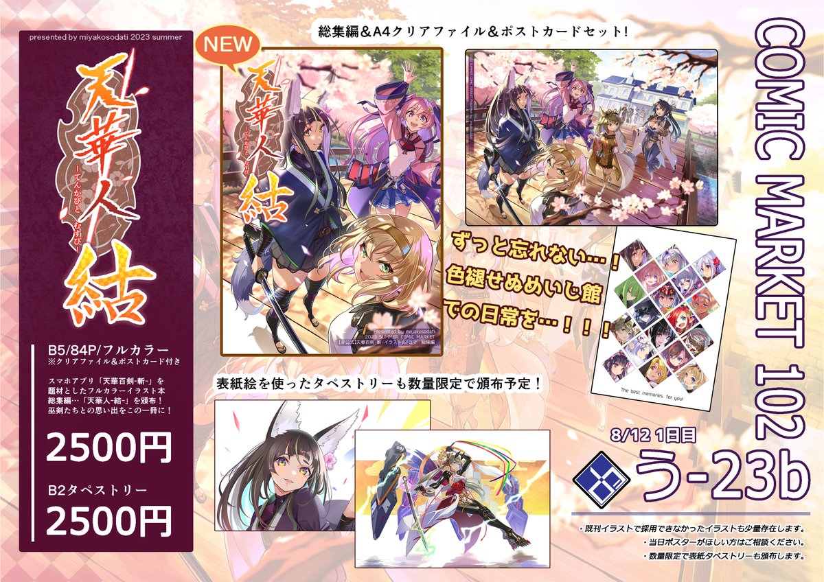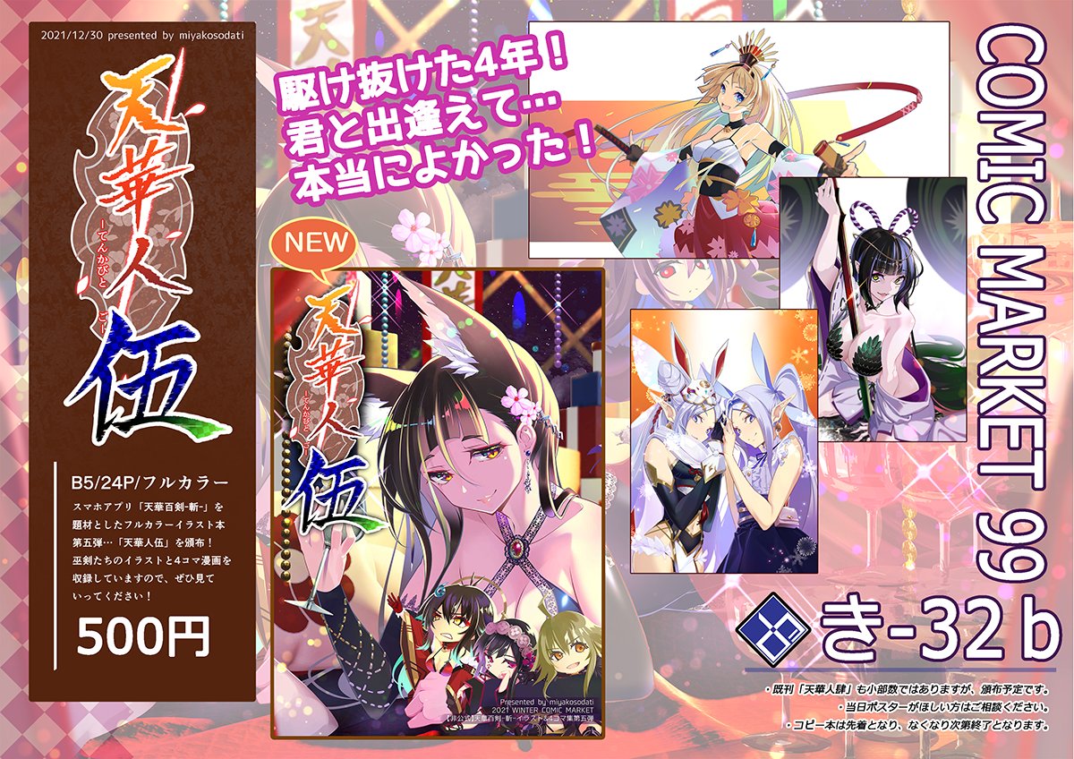 コミケ102当選しました!! 土曜日 西館 う-23b ですー。 今までの天華人壱~伍をまとめた上で、描き下ろしも追加した総集編を頒布予定。多分フルカラーで80Pくらい。同人活動久しぶりだぁー!がんばろー! webcatalog.circle.ms/Perma/Circle/1… #C102WebCatalog