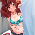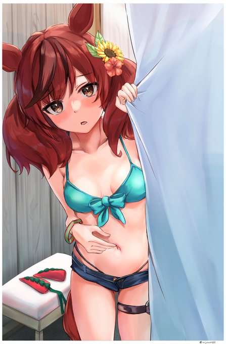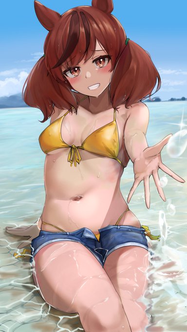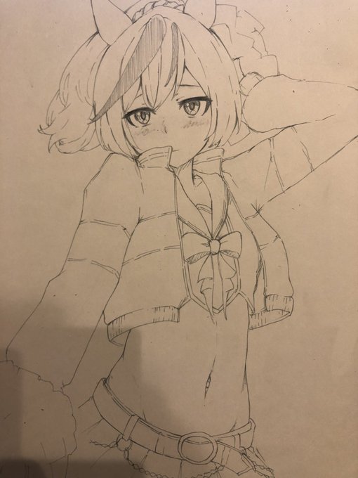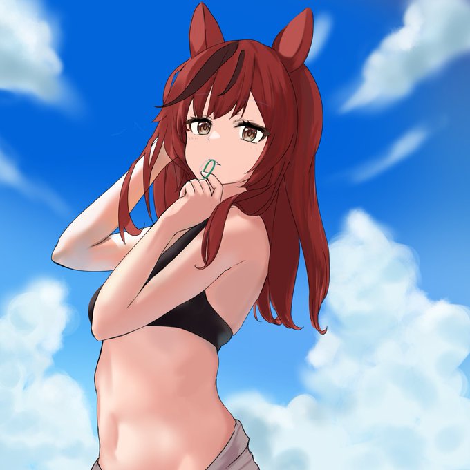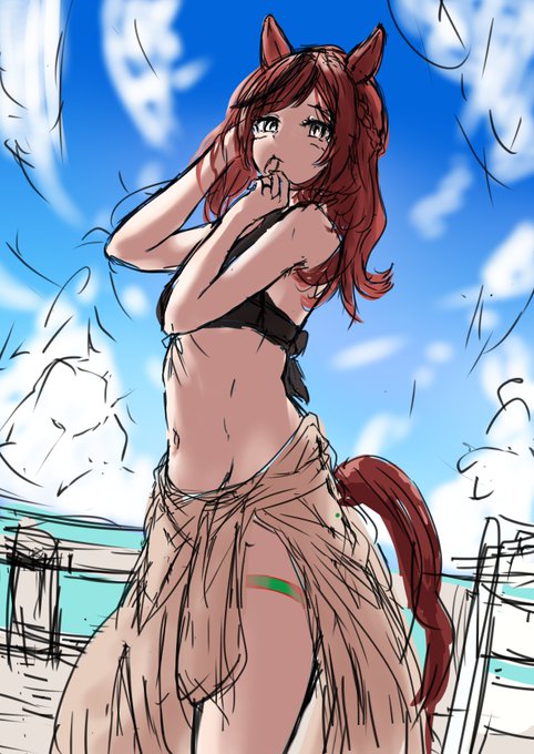 ニョロトノさんの妹マックイーンを描かせていただきました!!ありがとうございました! これは「お腹を蚊に刺されて薬を塗っている所を見られて恥ずかしがる妹マックイーン」です。 #ウマ娘 twitter.com/i/web/status/1…