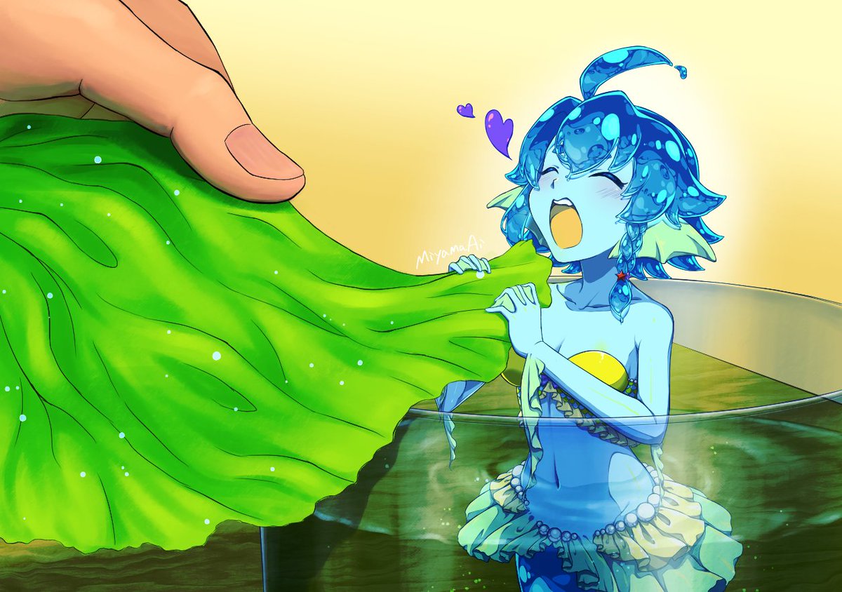 イチマツさんのタグ企画 #一次創作絵師拡散フェス03 に参加します✨ 手乗りサイズのスライムな人魚の観察日記風イラストシリーズです🧜💧 ファンタジーな生物が現実にいたらいいなあという妄想を描いています(●´ω`●)💭