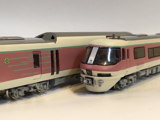 #今年作った模型晒そうぜ tomix初期の旧14系などから「みやび」、tomix115系から「ろくもん」です。 前者は昔のNマガ記事等の憧れをトレース、後者は好きな水戸岡デザインをNサイズで作り込みました。(ろくもんはTMSコンペ準佳作にて来年渋谷IMONで展示されます)