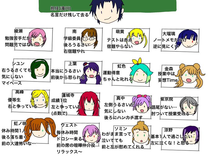 15 68 机歪んだ もしもシリーズのキャラが同じクラスなら ※ピュリティ苗字不明の為下の名前 ※年齢関係なしクラス 初描きの子多数!! 21/09/04 22:14
