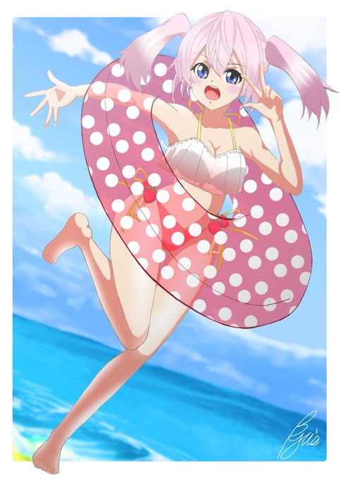 ぶいちゃんの新衣装が待ちきれなくて まずは水着になってもらいました。 昨日の水着イベントちょっと遅れて行ったら終わってて誰もいなかったのは秘密。 #いちごのくにのイーたん #イラスト #絵描き人