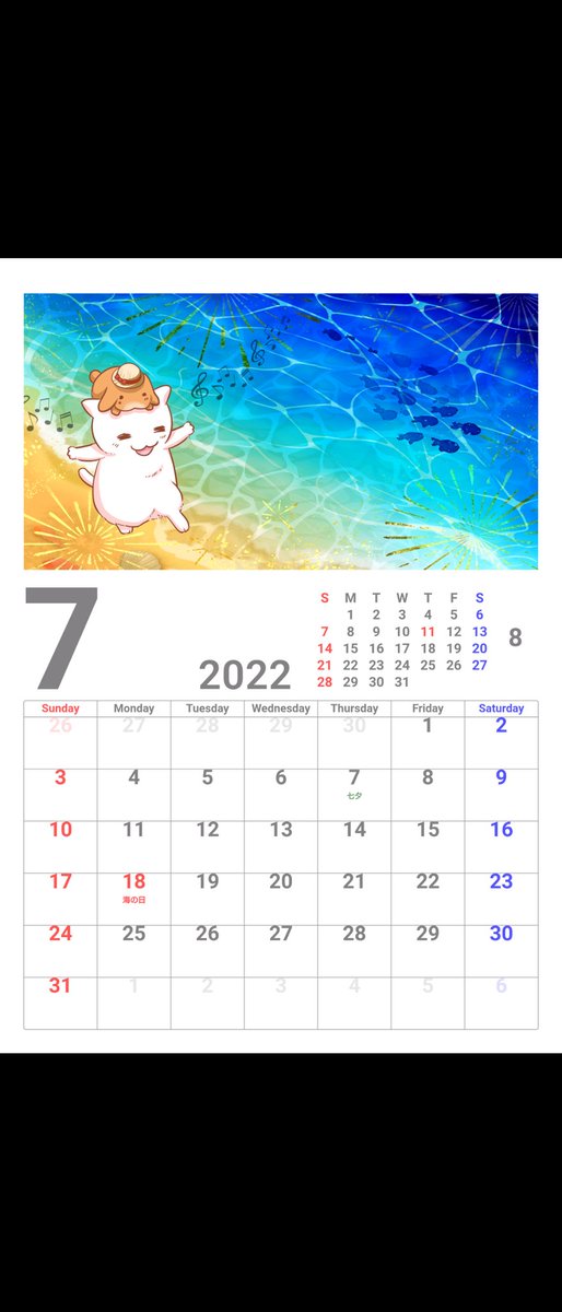 8月の無料配布カレンダーです✨ よかったらシェアしてくださいね♪ 大空を気持ちよく飛行してます✨ スマホの画面などにどうぞ(n*´ω`*n) #絵描きさんとつながりたい #猫好きさんと繋がりたい