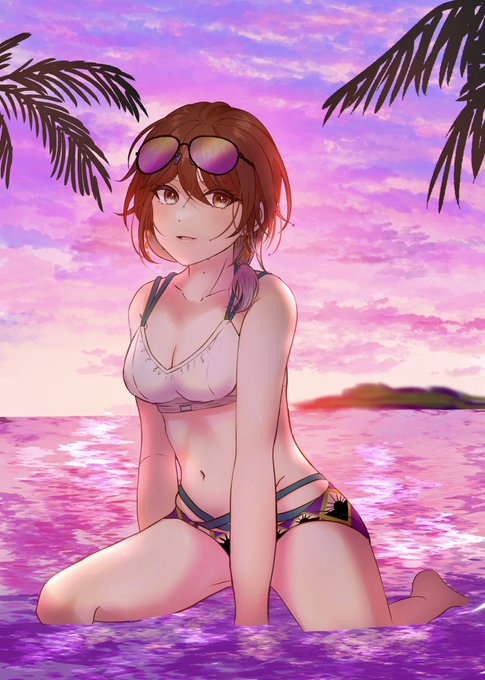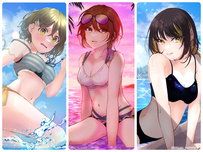 #夏が終わりそうだし今年描いた水着絵を貼ろう にちか、美琴、ルカ、3人ともかけてよかった〜!冬にも水着は描くけどね